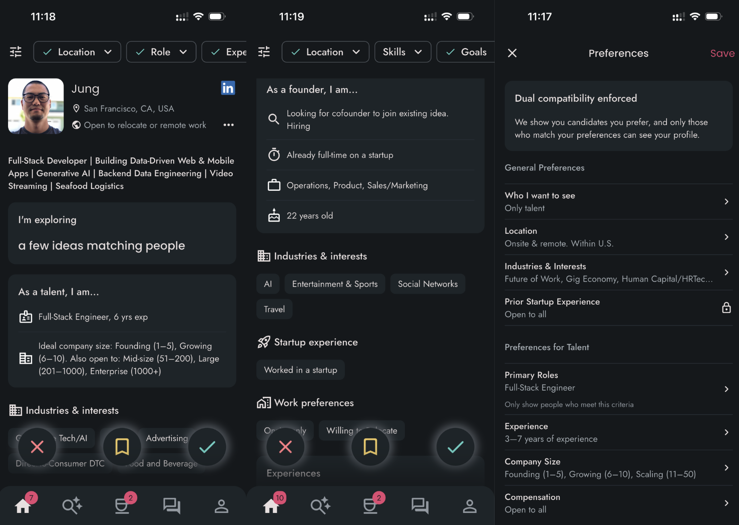 What makes CoffeeSpace stand out is its expansion to focus on the very first 5–10 hires—the people who often define a startup’s culture and direction. The platform uses a double opt-in match system (both sides must express interest), offers skill-based and mission-based filters, and integrates chat features for direct communication once a match occurs. Its UX is designed to feel natural and fast—mirroring social discovery apps—but built specifically for startup team formation, not casual networking.